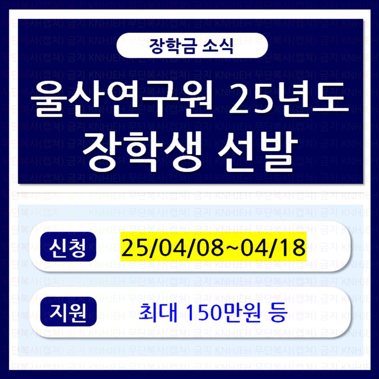 (장학금) 등록금성/생활비성_울산연구원 2025년도 상반기 장학생 선발 소식