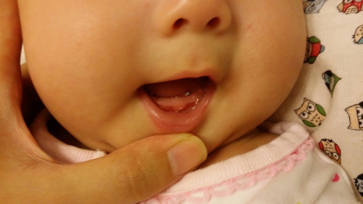 +123 하악유전치맹출 보통 6-7개월 늦으면 10개월 전후로 나는 아래 앞니가 벌써 나는 딸랑구 15.10.08 발...