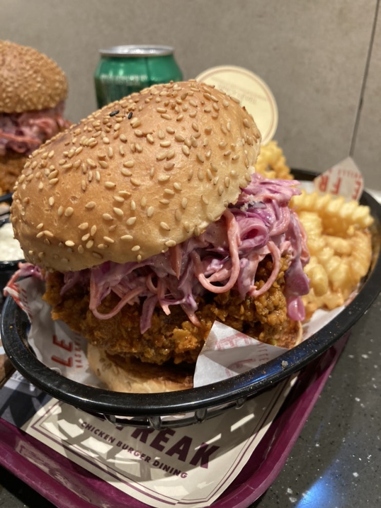 핫한 수제버거집이죠! 르프리크 더현대서울점으로 왓어요 얼른 시켜볼게요 시그니처 버거에 프렌치 프라이 ...