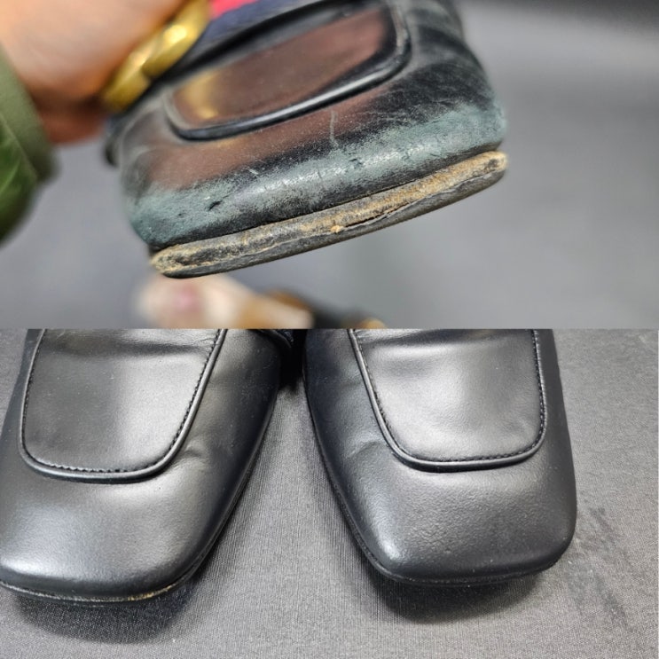 구찌 블로퍼 가죽 까짐 복원과 염색 수선 + 로고 있는 깔창 새로 제작하기