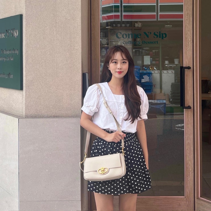 라라슬데일리룩 : 여름 화이트 가방 코디 ft. 아떼 바네사브루노 머랭 슈렁큰 바게트백 (여성 크로스백 코디, 숄더백 추천)