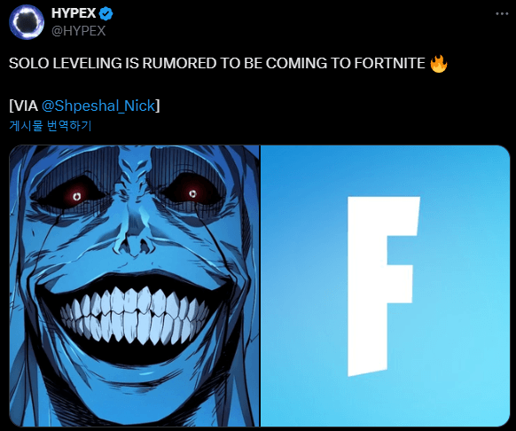 나 혼자만 레벨업이 포트나이트와 콜라보를 한다는 찌라시가 돌고 있음ㄷㄷ 또 여의도 아재들은 포트나이트...