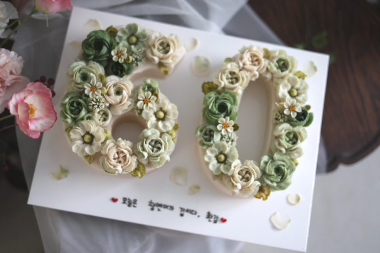 부산 앙금플라워 떡케이크 / 차림상과 깔맞춤한 아빠 환갑 60숫자케이크 맞춤제작