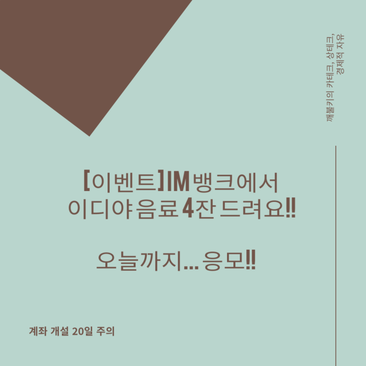 [이벤트] IM 뱅크에서 이디야 음료 4잔 드려요!!