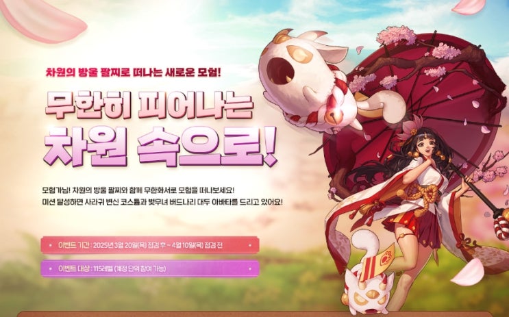 무한화서 던전 업데이트 및 새봄맞이 이벤트들이 많이 나왔습니다! 올 봄에도 열심히 달려야겠죠?
