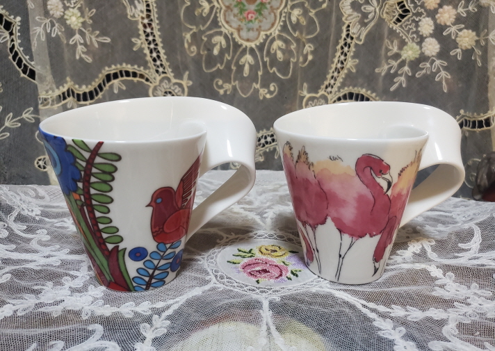 <완료> 빌보 웨이브 머그 컨디션 예쁜 빌보 웨이브 2점이에요~~~^^ 1번 2번 컵 직경 9.7, 높이 11 1...