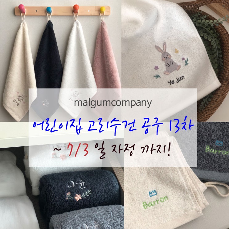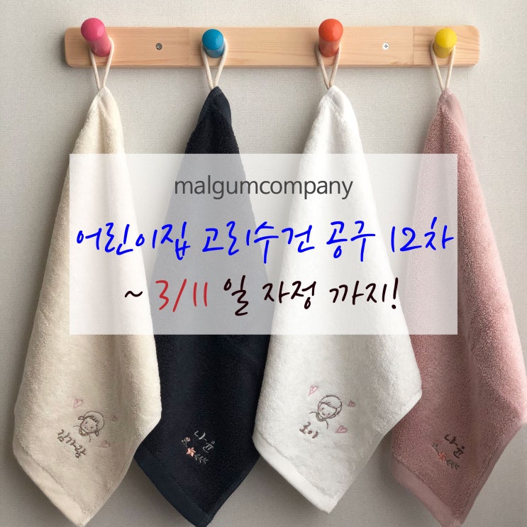 마감 !! 재오픈했습니다. 주문가능 20일 낮 12시까지 [ 어린이집 고리수건 공구 15차 ]