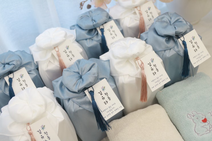[수건보자기포장::답례선물]-해님꽃답례품 #해님꽃답례품 포장 수국(상자)보자기포장 _수건1장 수건 170g 3...