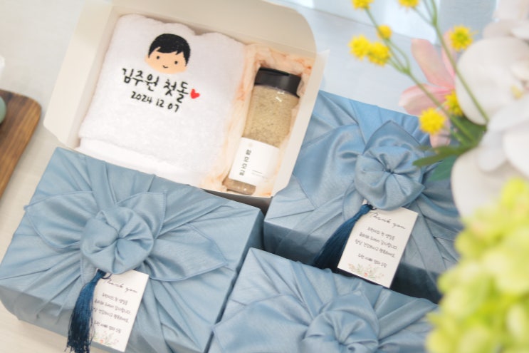 [수건함초소금세트::돌답례품보자기]-해님꽃답례품 #해님꽃답례품 포장 프리미엄 수국보자기 구성 송월타올...