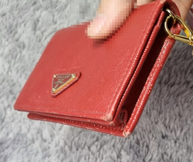 프라다 카드지갑 세탁과 염색 명품관리로 가죽기스 까짐 해결