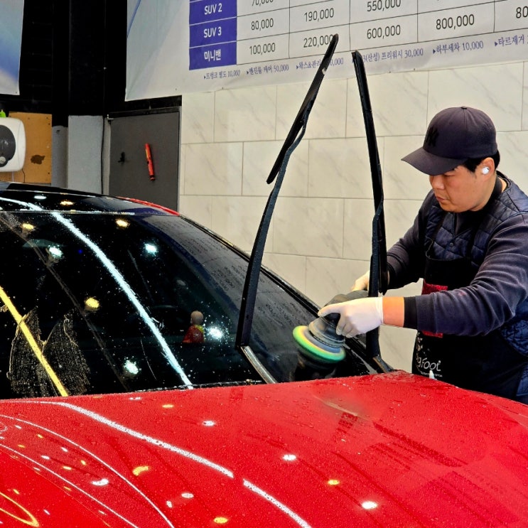 양주 유막제거 유리 발수코팅 디테일링 ev6 인증중고차 세차