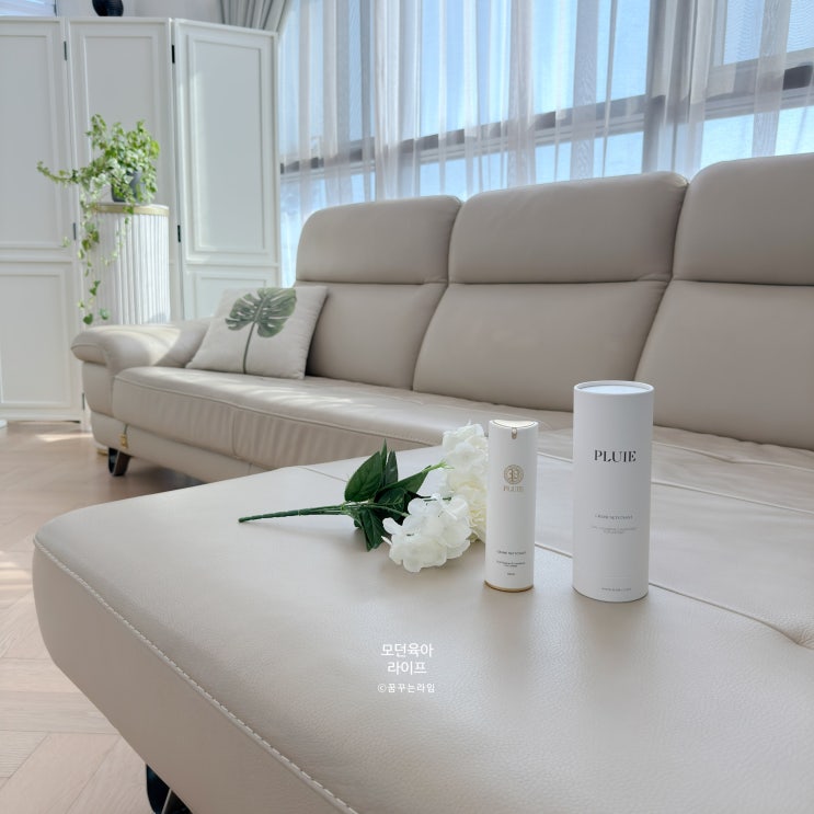 다우닝 4인용 천연 가죽쇼파 청소 플뤼에 클리너 얼룩 관리 닦는 법