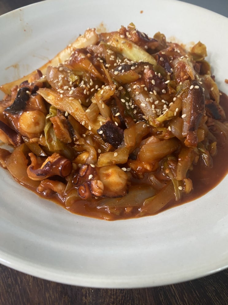 오랜만에 아이들에게 아침을 선사하였다 전날 사놓은 데친문어로 문어숙회를 할려다가 요리를 변경~ 낙지볶...