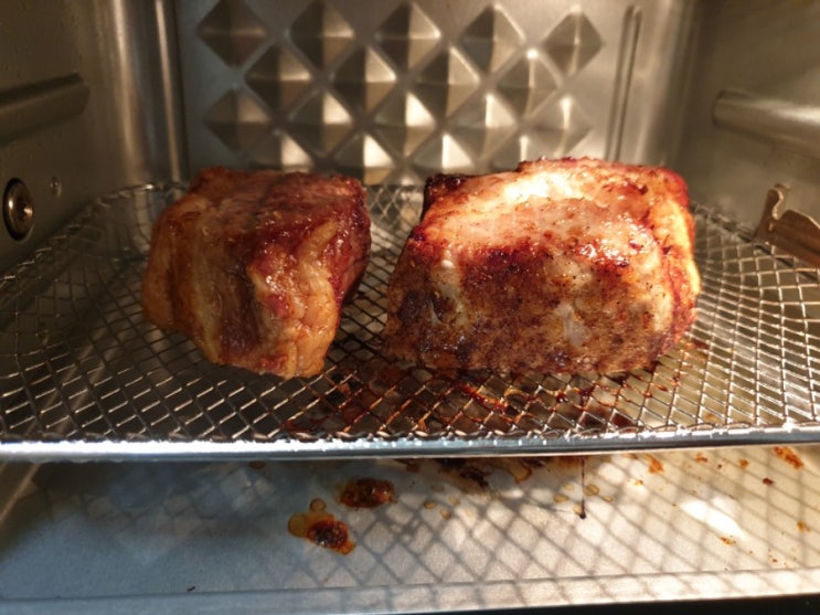 #통삼겹구이 요리를 해보았어요. 기본 양념을 하고 통째로 #에어프라이어에 넣었어요. 내부는 요렇게 되있...
