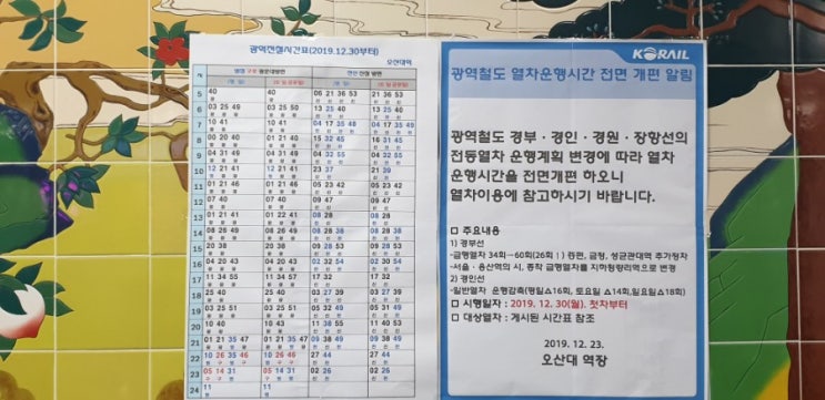 [오산대역] 1호선 지하철시간변경, 전철시간표
