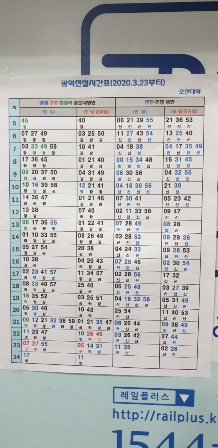 [오산대역] 1호선지하철 시간 변경 3월 23일 기준