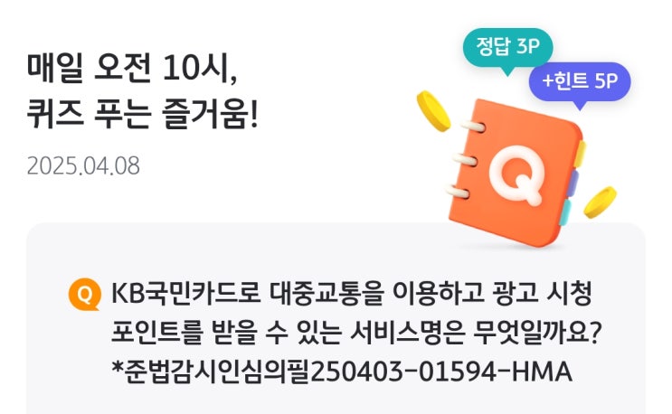 KB Pay 4월 8일 화요일 오늘의 퀴즈 정답