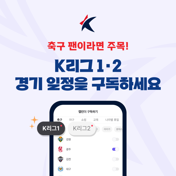 [네이버캘린더] 구독캘린더에서 K리그1·2 경기 일정을 만나보세요.