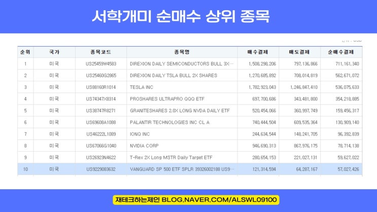 서학개미 미국 ETF 순매수 PICK은 레버리지