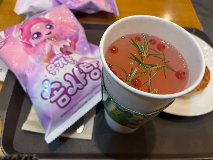 [메가커피] 오로라핑의 유기농 솜사탕, 치즈 품은 감자빵, 상큼 리치티