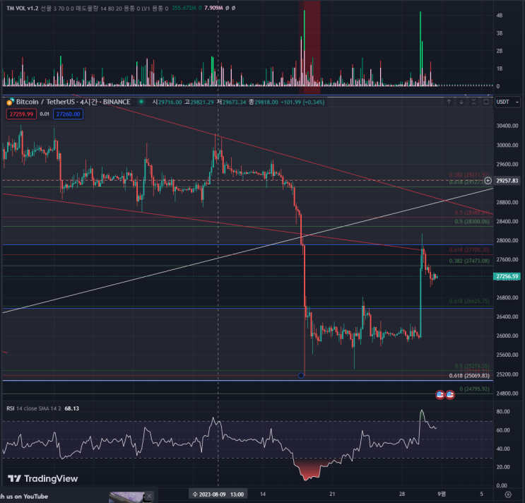 안녕하세요. 추석 연휴부터 시작해서 10월 1일 채널을 이탈하는 움직임을 보여준 비트코인 입니다. 매매원...