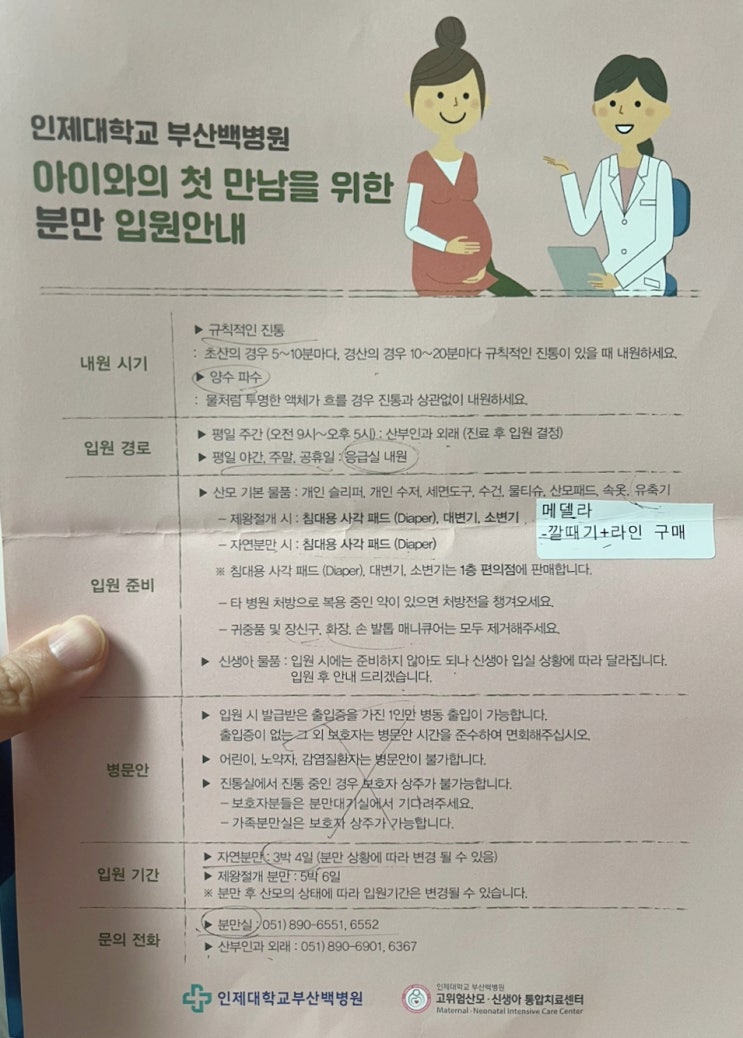 남편 시점 입원준비물 : 부산개금백병원 응급실 제왕절개 출산 기록(1)