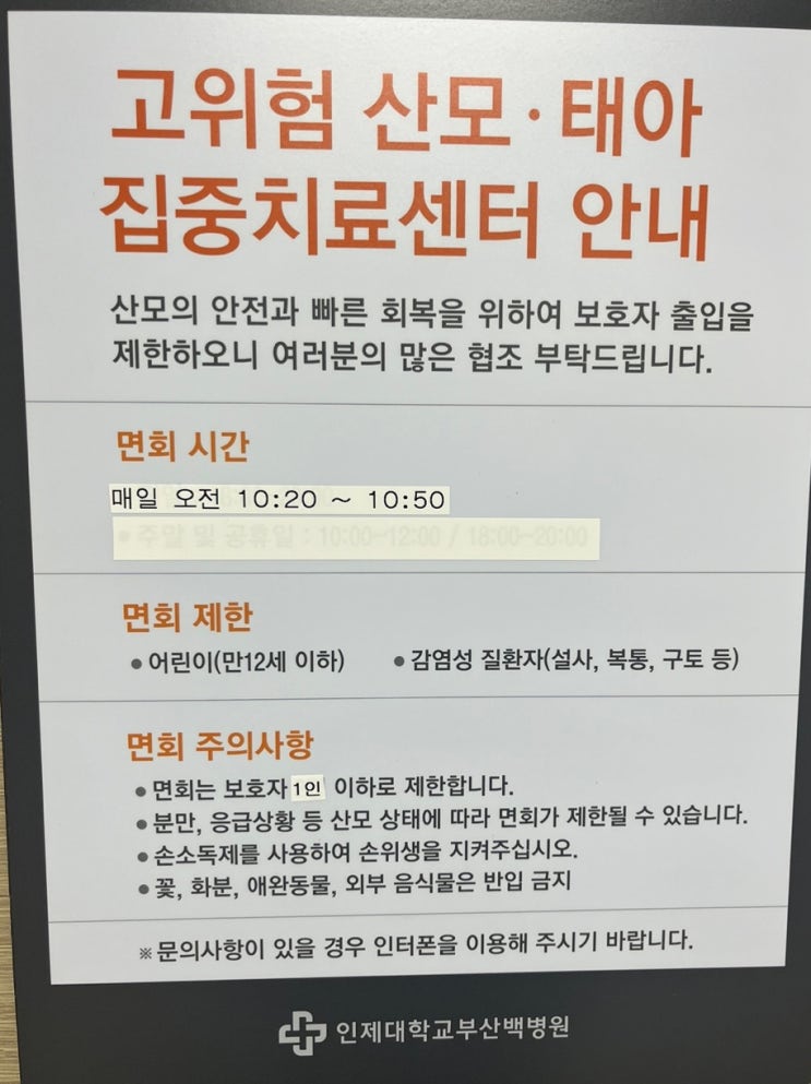 면회시간, 메델라 유축기 : 개금백병원 고위험산모실 제왕절개 출산 기록(2)
