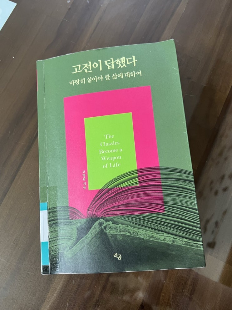 책의 제목: 고전이 답했다 마땅히 살아야 할 삶에 대하여 저자: 고명환 고전에 대한 정의를 잘 모르겠지만 ...