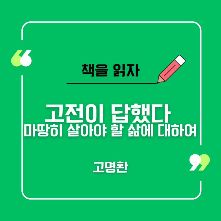 책의 제목: 고전이 답했다 마땅히 살아야 할 삶에 대하여 저자: 고명환 고전에 대한 정의를 잘 모르겠지만 ...