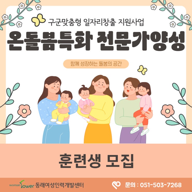 [구군맞춤형 일자리 창출지원사업]온(溫)돌봄 특화 전문가 양성 교육훈련생 모집-산모신생아건강관리사 무료취업교육