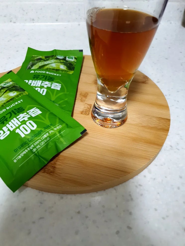 활발한 위장활동을 위해 푸드버킷 유기농양배추즙 마셔봤어요.