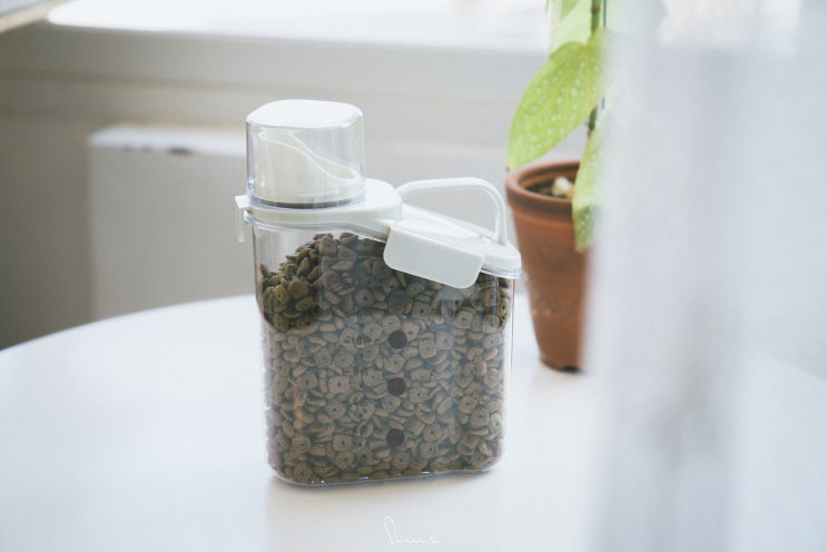 밀폐 고양이사료통 위드레오 원래 소분 봉투에 소분을 했었는데, 요놈 시바스키들이 호시탐탐 단추의 사료...
