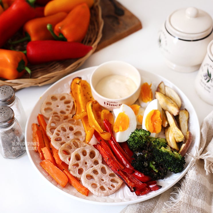 글 . 사진 by 유나스테이블 * 파프리카요리 몸에 좋은 음식 에어프라이어 야채구이 상큼한 요거트 소스 레...