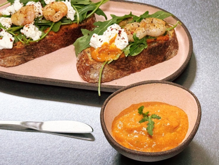 파프리카를 활용한 오픈 샌드위치 소스 만들기 달콤하고 부드러운 구운 파프리카 소스 오픈 샌드위치는 바...