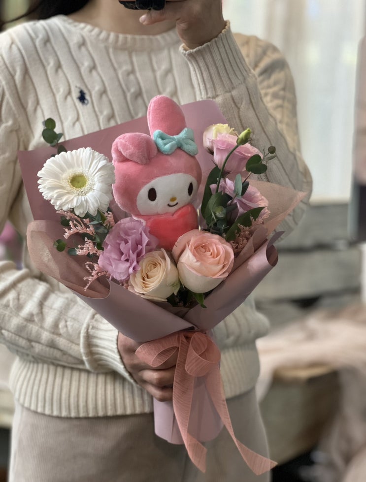 졸업시즌을 맞이하여 인형꽃다발 판매를 시작합니다. 인형은 산리오캐릭터 중 인기가 제일 좋은 쿠로미, 마...