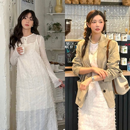 기은세 이시안 원피스 온앤온 레이어드 롱원피스 추천 코디