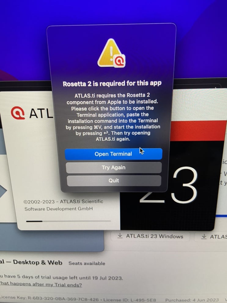 맥북에어 M2 로제타2 설치 관련 #아틀라스 티아이 #질적 데이터 코딩 프로그램 #atlas ti