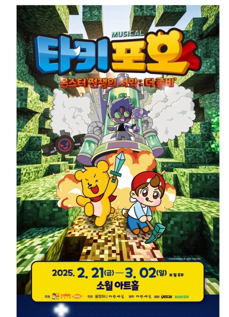 오늘은 아이가 좋아하는 유튜브 채널 캐릭온TV의 타키포오 뮤지컬을 보고 왔어요! 캐릭온TV는 마인크래...
