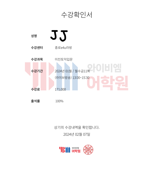 YBM토익 미친토익 불라방 입문반 후기 <내돈내산 인증有>
