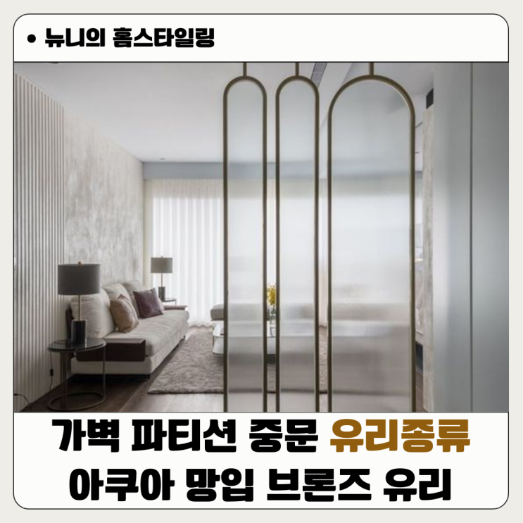 안녕하세요 리빙 인플루언서 김뉴니입니다. 인테리어에서 공간을 나눌 때 ‘가벽’, ‘파티션’, ‘중문’...