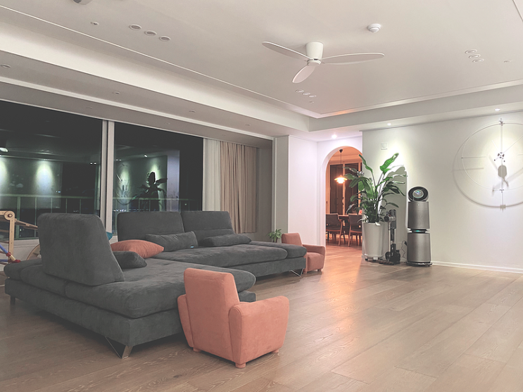 코너형소파로 고급스러운 거실 공간 완성