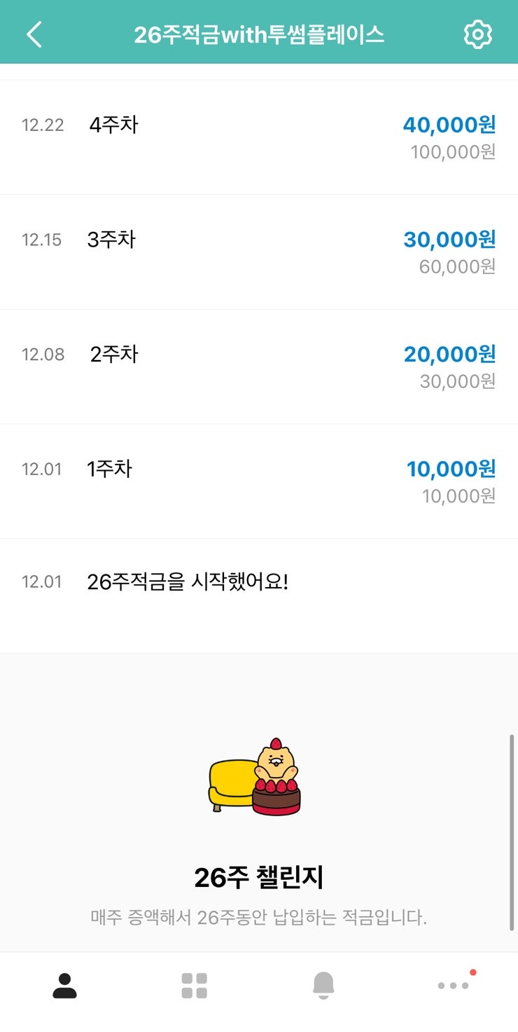 작년 12월 가입한 카카오뱅크 26주 적금 (with. 투썸플레이스) 1만 원 증액의 만기가 돌아왔다. 그 후기를 ...