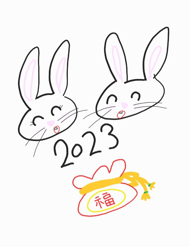 벌써 2023년 계묘년 검은 토끼의 해가 시작되었습니다! 그 기념으로 새해 인사 그림을 간단히 그려봤습니다...