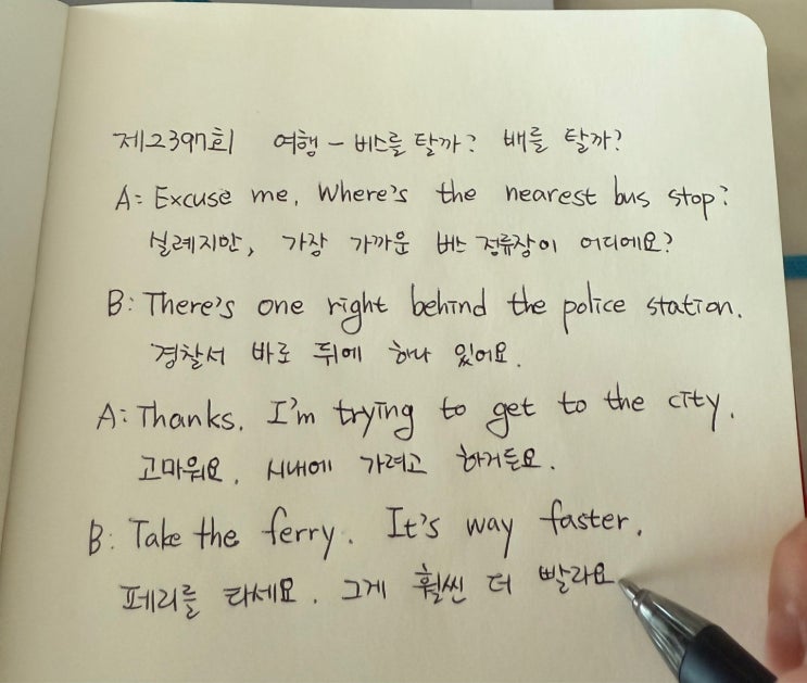 왕초보영어공부 2025년 (EBS왕초보영어 제2397회 여행 - 버스를 탈까? 배를 탈까?) 혼자 공부하기 복습