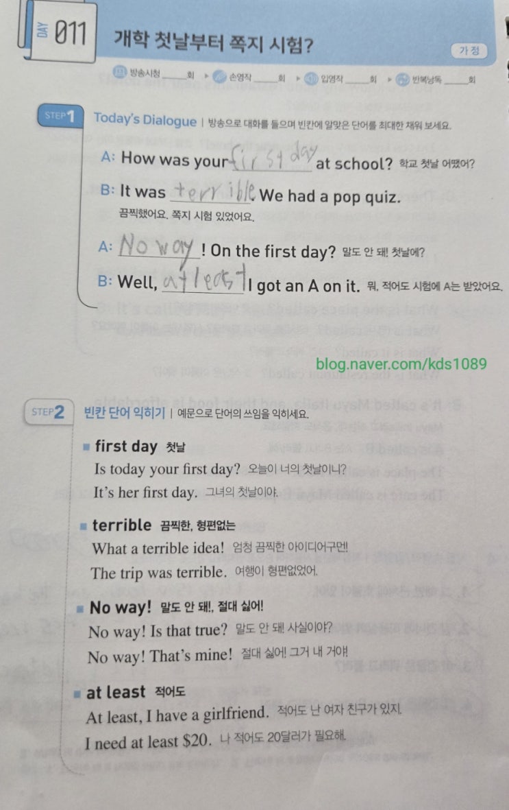 #EBS왕초보영어 #2025상권 #011 #개학첫날부터쪽지시험? #250303 ⭐ first day 첫날 오늘이 너의 첫날이...