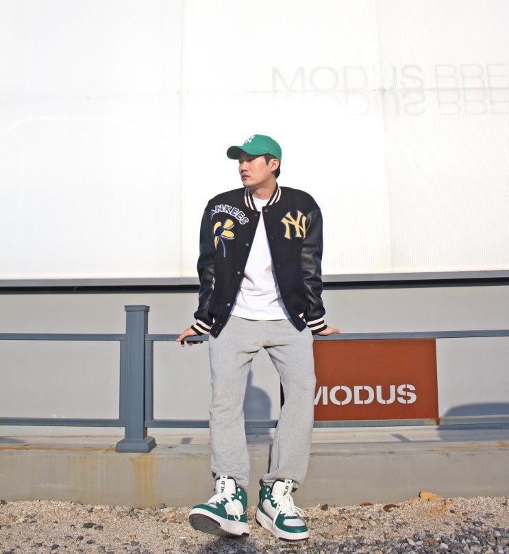 MLB 바시티자켓, 가을 자켓으로 활용도 만점! 남자운동화와 함께한 데일리룩까지