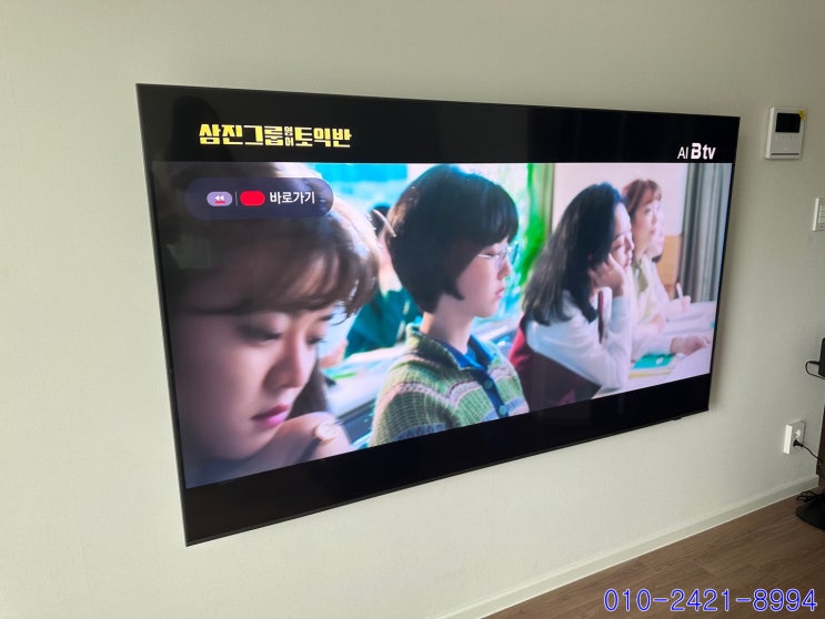 안양 벽걸이티비 설치 65인치 티비 타공설치 사운드바 sk아리 선반설치 선정리까지 한번에