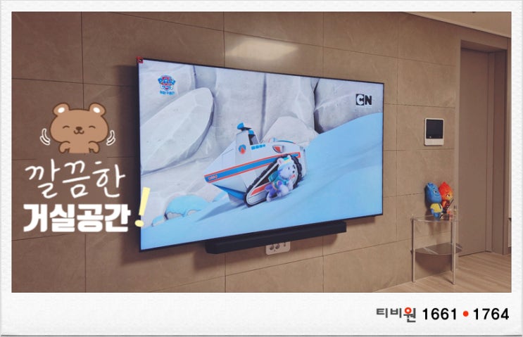화성동탄병점 벽걸이티비TV설치 티비선정리작업 SK뷰파크2차 대리석타일 아트월 선없는벽걸이TV 깔끔하죠?