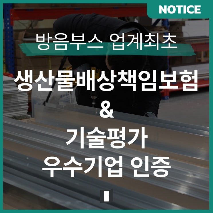 (방음부스 업체 최초) 생산물배상책임보험가입 & 기술평가 우수기업 인증