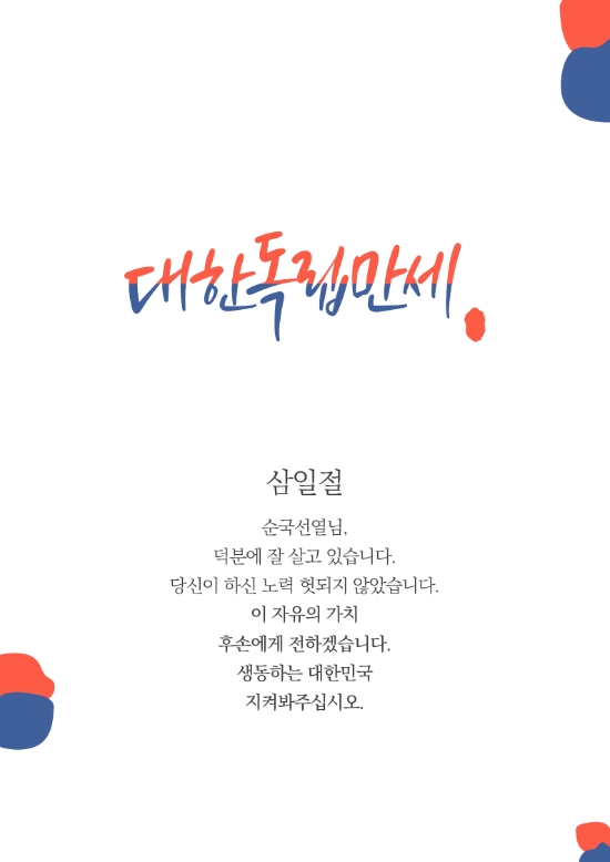 <삼일절> 순국선열님, 덕분에 잘 살고 있습니다. 당신이 하신 노력 헛되지 않았습니다. 이 자유의 가...